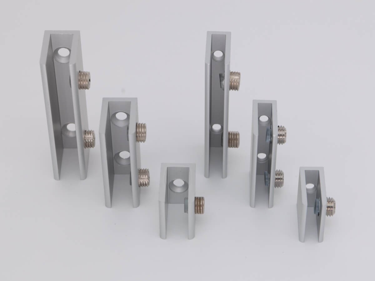 Алюминиевые флажковые держатели применяются для размещения вывесок перпендикулярно поверхности стен. П-образное крепление имеет 2 отверстия под саморезы, и 2 резьбовых зажима для фиксации материала толщиной от 2 до 5 мм для размеров держателей 9х22х19, 9х22х38, 9х22х58 и от 6 до 8,5 мм для размеров держателей 13х22х18, 13х22х38, 13х22х58.
