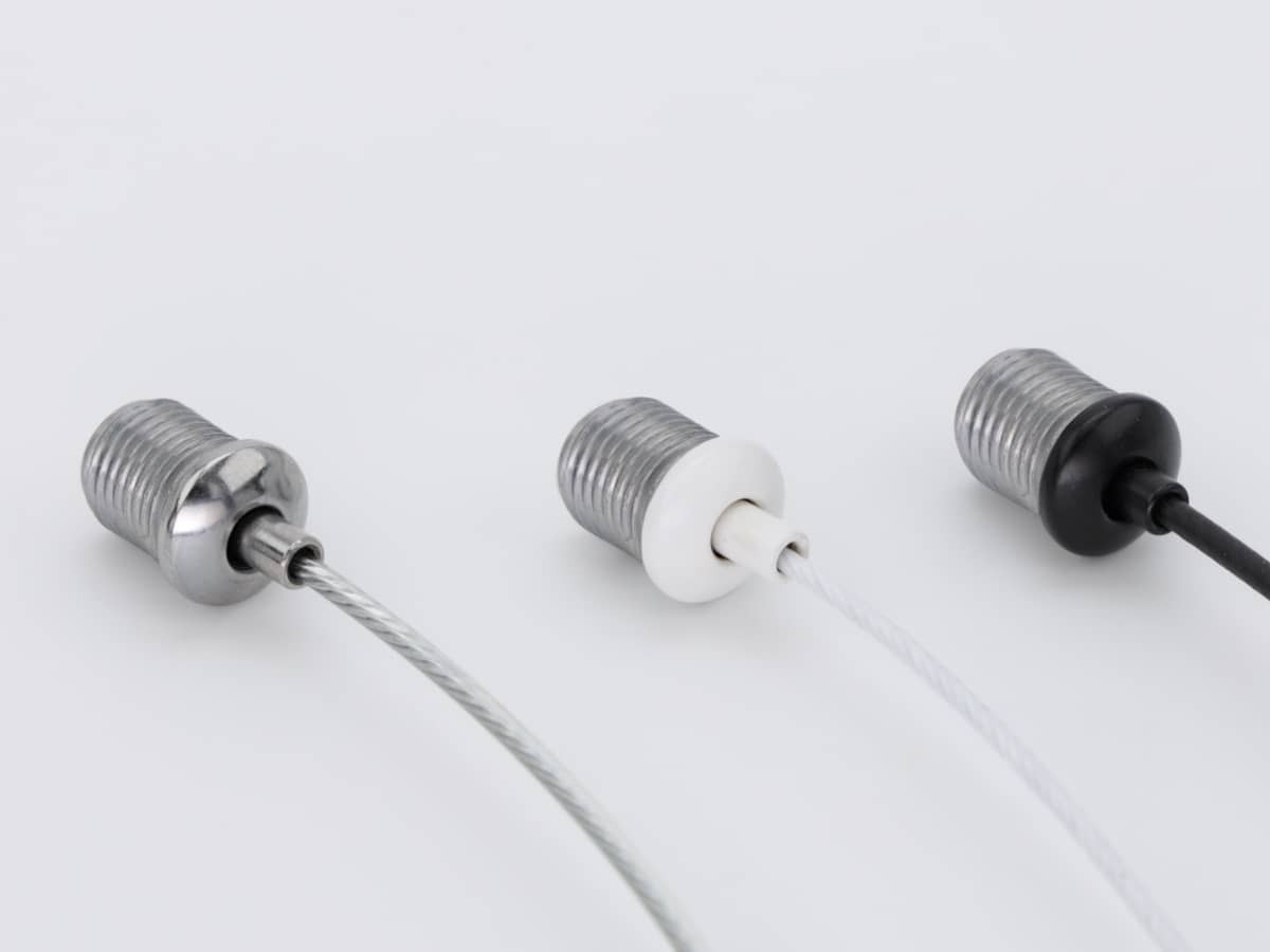 Неразборный цанговый крепеж/подвес для троса до 2 мм (лучше использовать тросы до 1,5-2 мм в диаметре). Крепеж можно применять с тросами и меньшего диаметра от 1 мм. Имеет наружную крепежную резьбу М10 (шаг резьбы 1,0), длина резьбы 10 мм.