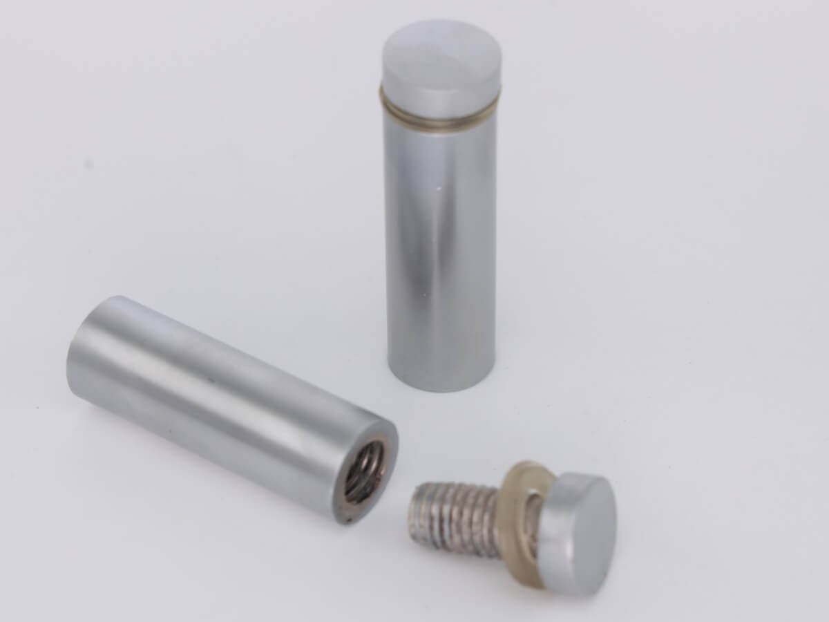 Дистанционные держатели металлические матовые, из сплава ZAMAK. Цвет — матово-алюминиевый. Используются так же, как дистанционные держатели из нержавеющей стали, для крепления на расстоянии (дистанции) от стены навигационных и информационных табличек, вывесок, постеров, декоративных панно.