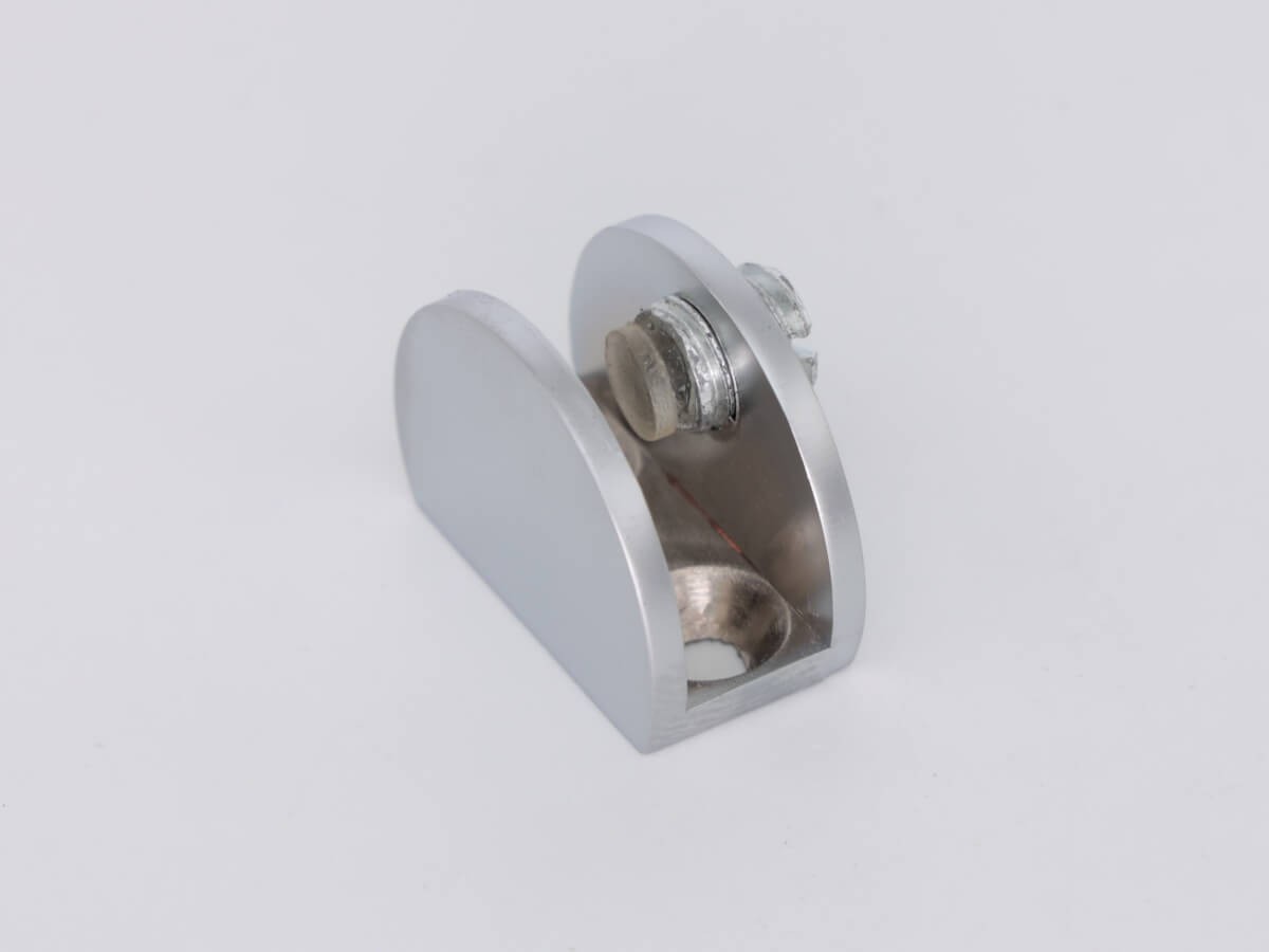 Алюминиевые флажковые держатели применяются для размещения вывесок перпендикулярно поверхности стен. П-образное, полукруглой формы крепление имеет одно отверстия под саморезы, и один резьбовой зажим для фиксации материала толщиной от 6 до 8,5 мм.