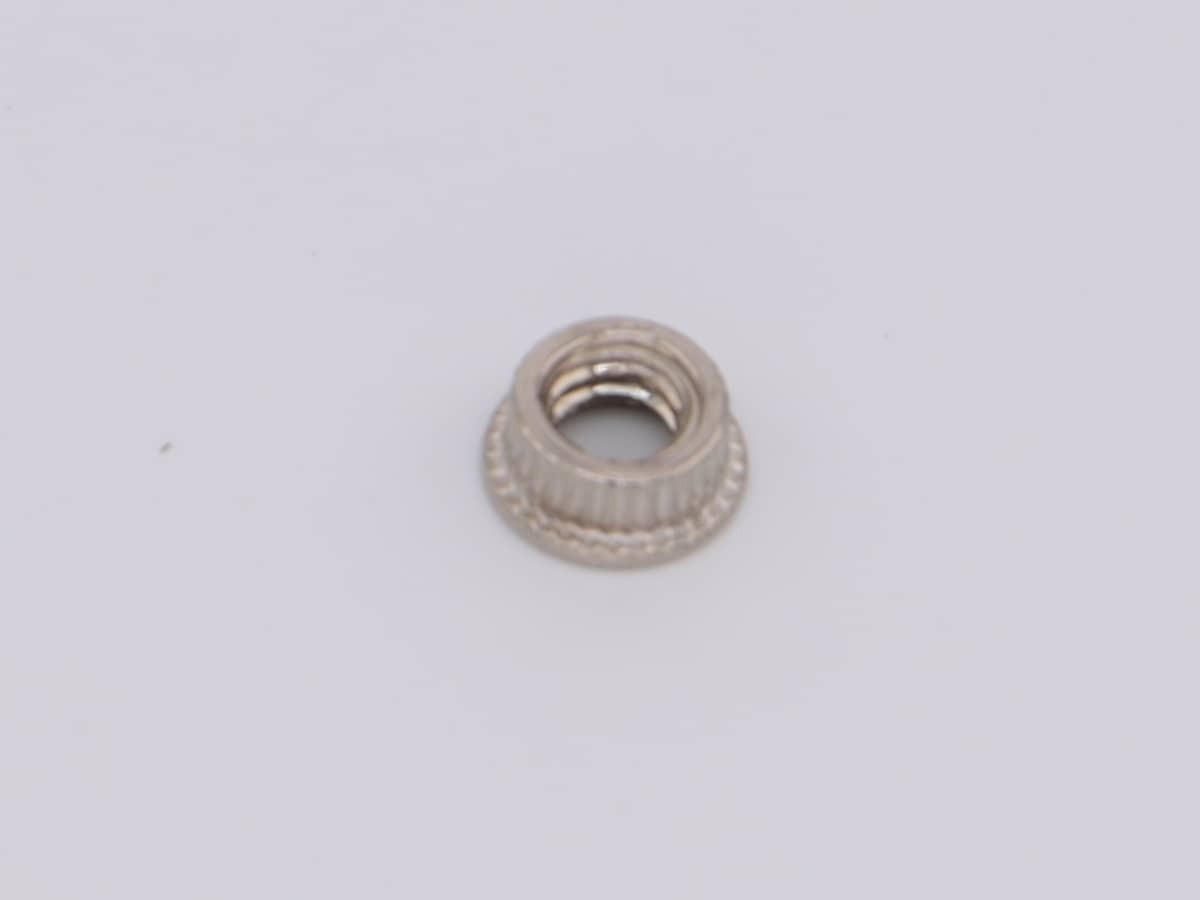 Вставная металлическая сквозная резьбовая гайка для пластика, резьба M4, высота 3 мм.