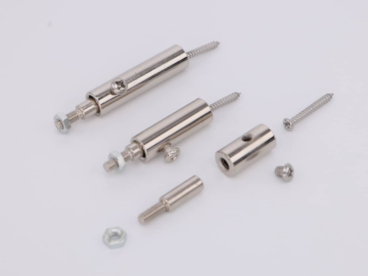 Дистанционный держатель скрытого крепления серии СК300, хромированная сталь. Диаметр дистанционного держателя 10 мм, отступы — 20, 30 и 40 мм.
