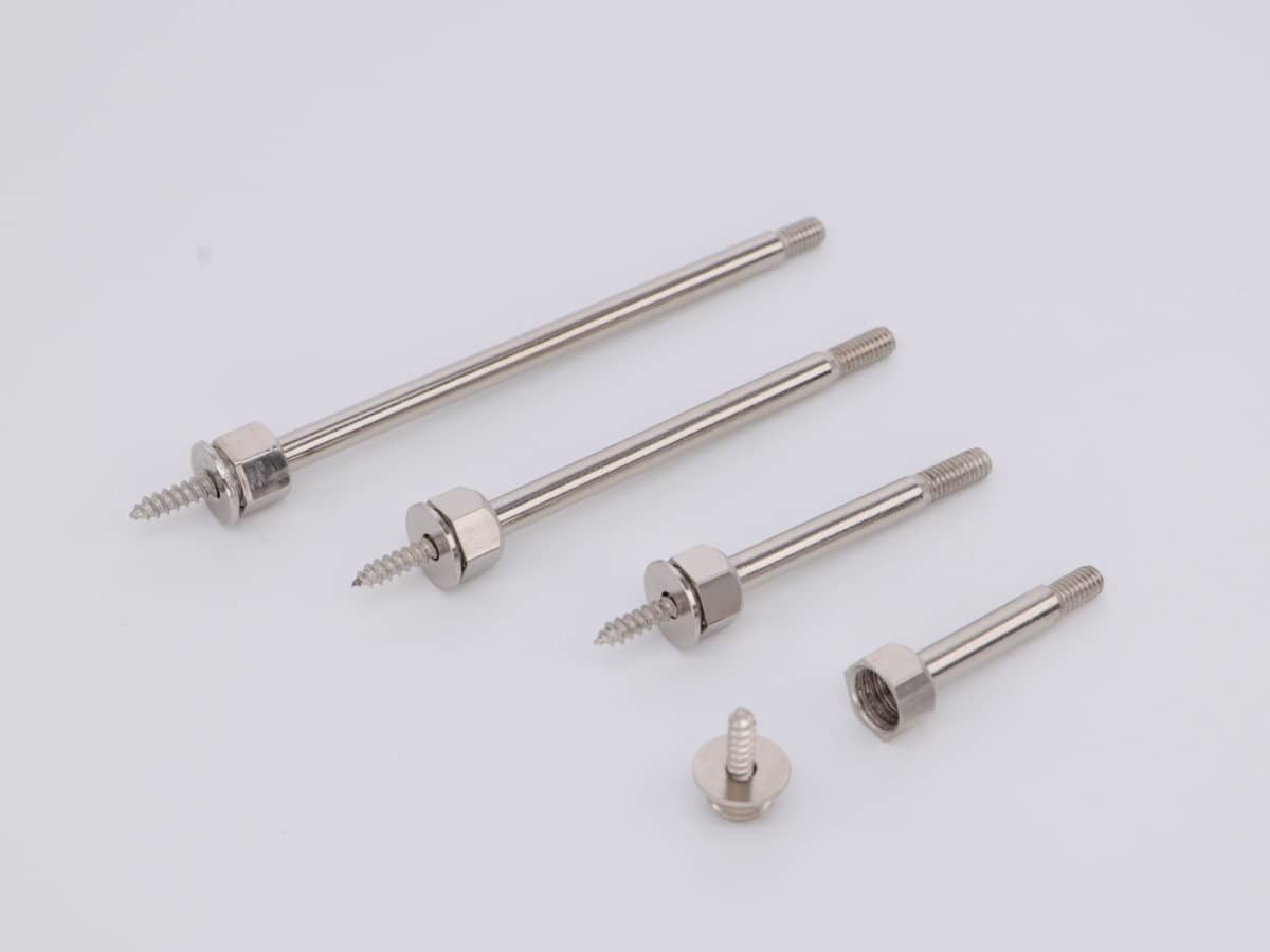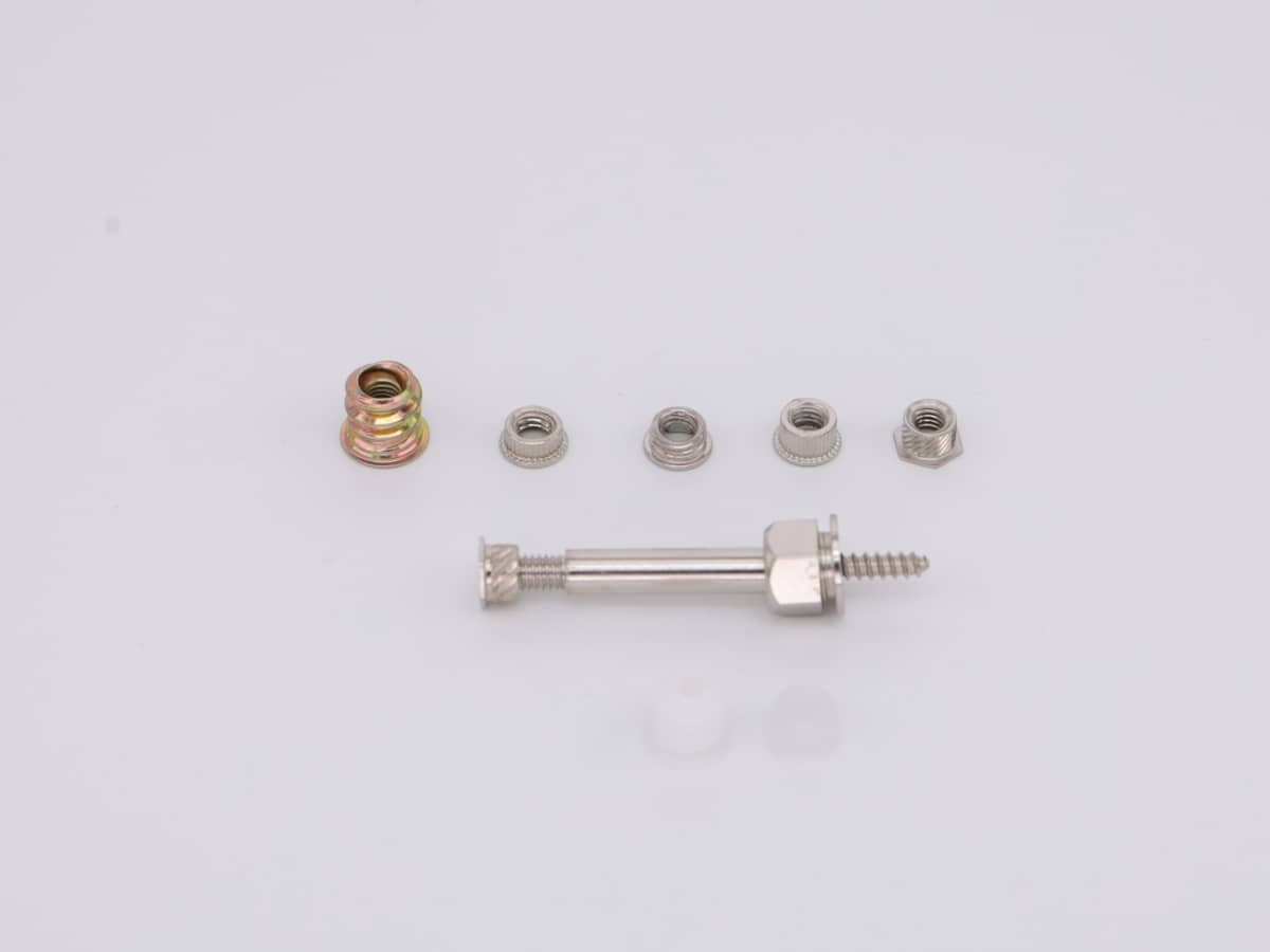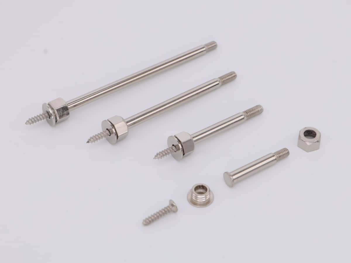 В комплект входит металлическая дистанционная втулка с резьбой, накладная гайка, установочная гайка и саморез.
