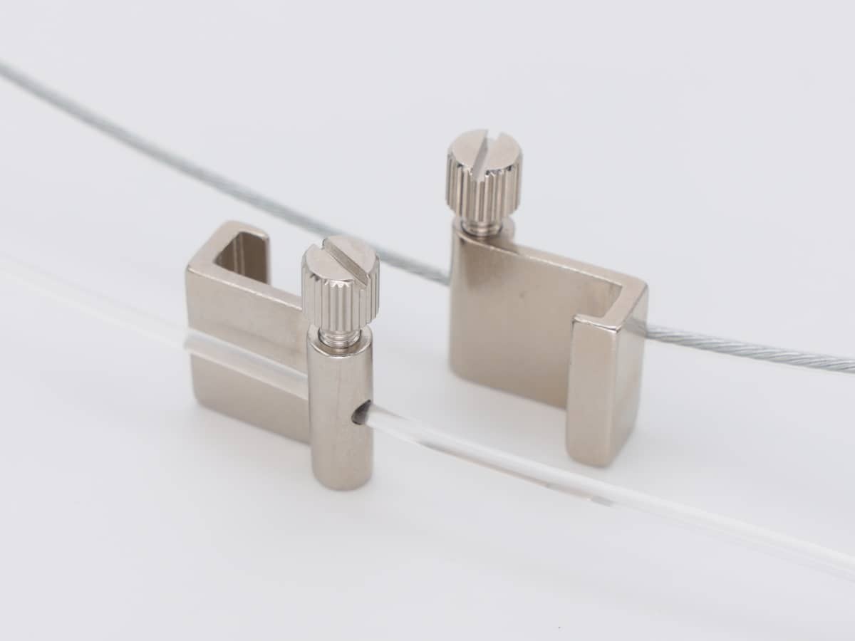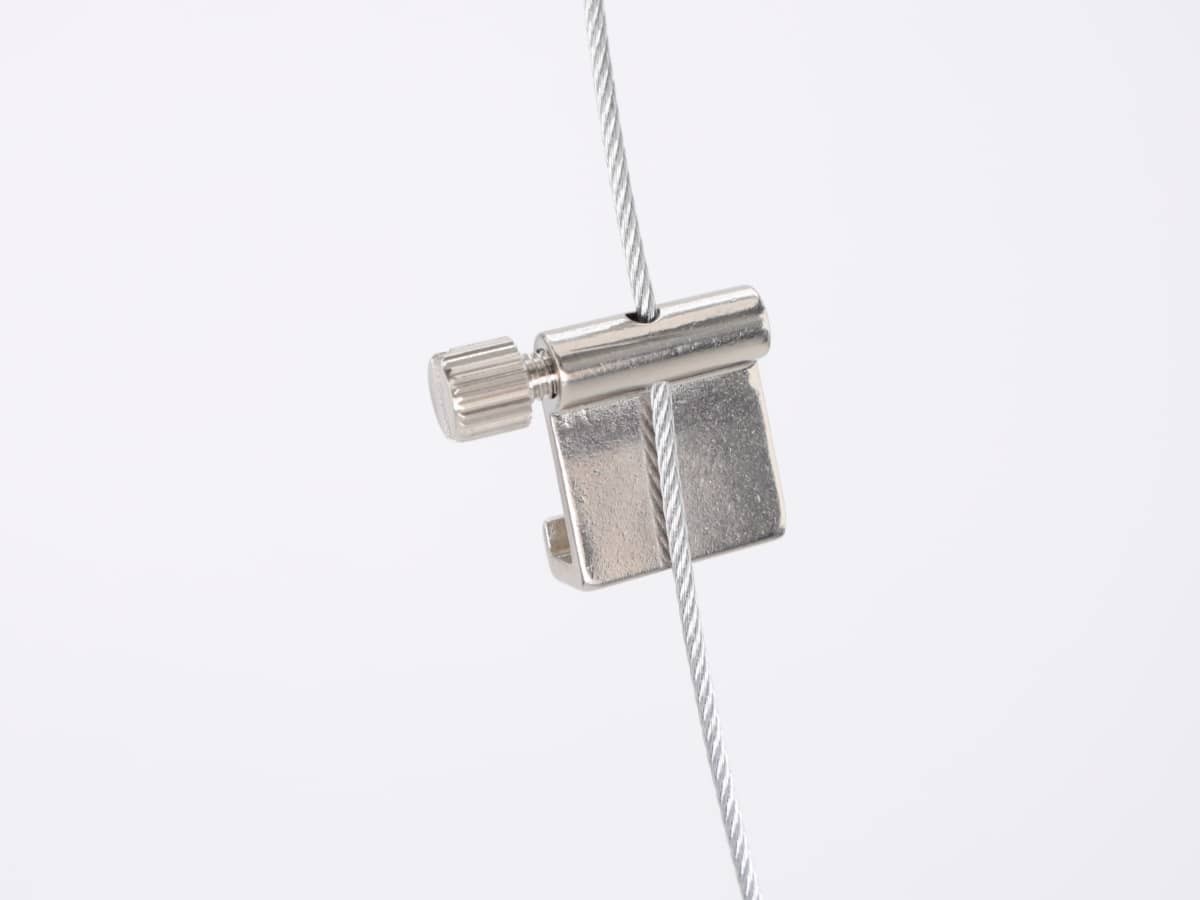 Крюк А275 с винтовым зажимом для подвешивания картин и постеров в алюминиевых багетах. Предназначен для крепления на трос или леску. Крючок из цинкового сплава имеет прямоугольную форму и фиксирует трос (леску) с помощью винта. Удобная конструкция позволяет использовать его для подвешивания постеров и картин в галереях, музеях и на выставках. Можно использовать с тросами и лесками до 2 мм.