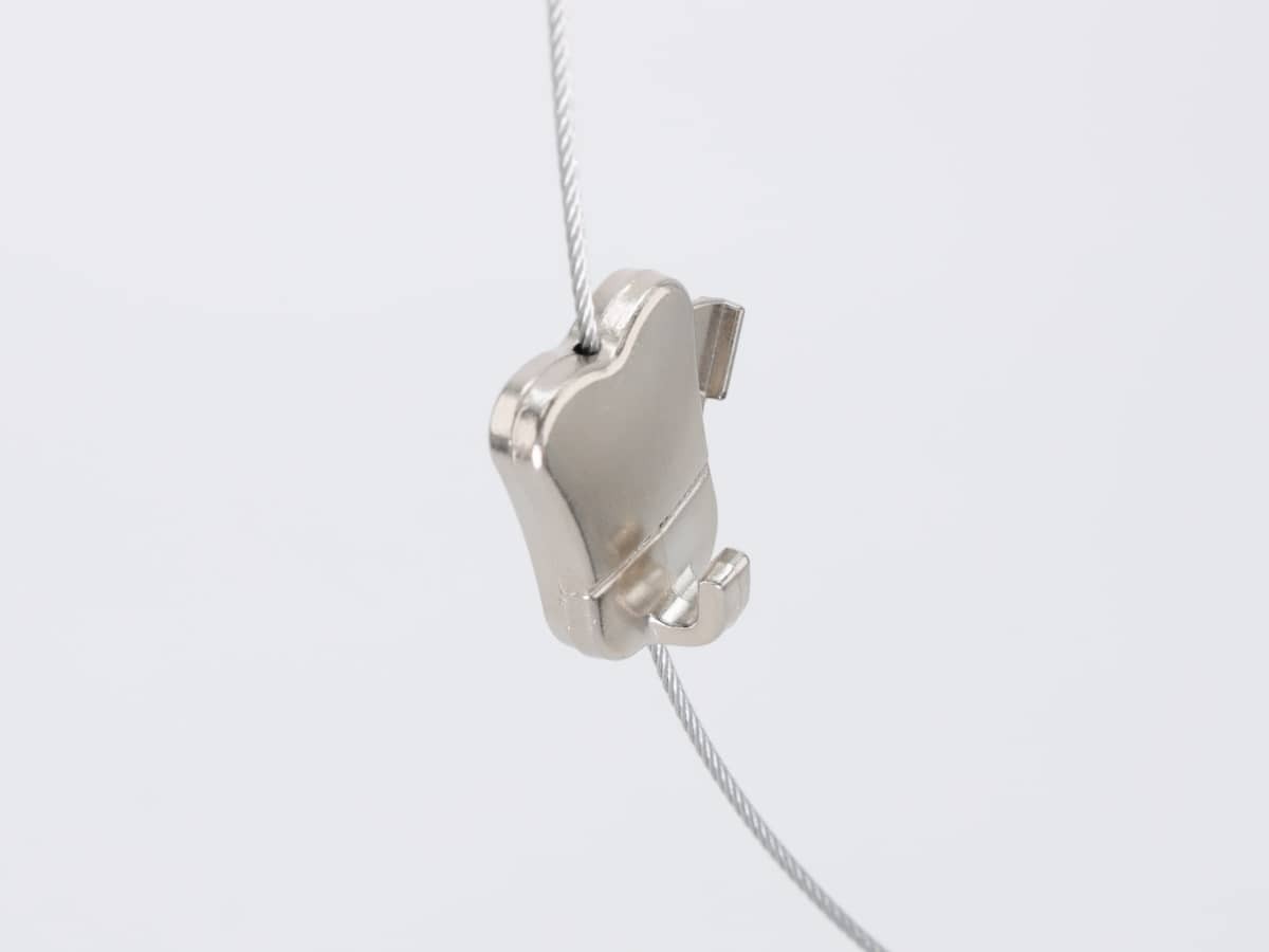 Зажимной крюк А278 предназначен для подвески картин на тросе. Этот металлический плоский крюк оснащён рычажным тормозом сбоку и в музейных кругах известен как Zipper.