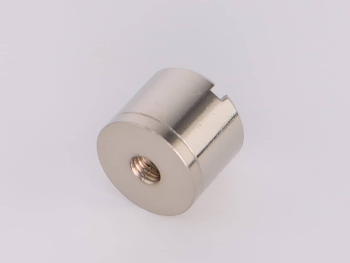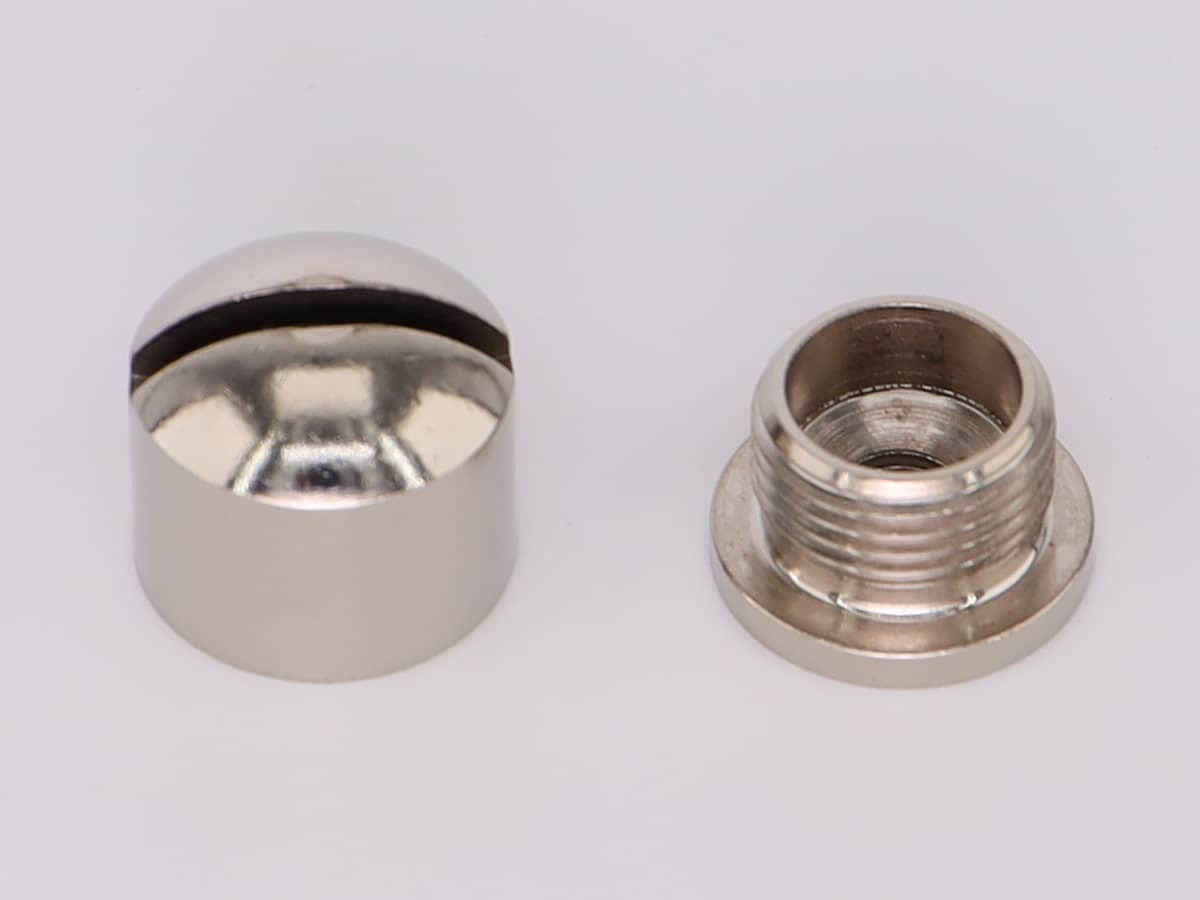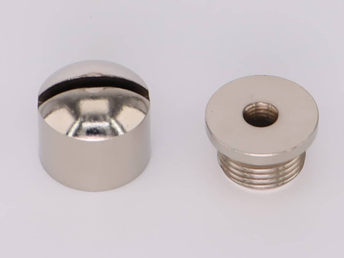 Подвес состоит из двух частей: основание с наружной резьбой на которую накручивается цилиндрической формы декоративный колпачок с прорезью под трос (толщина прорези 2 мм) и внутренней крепежной резьбой M5 (шаг резьбы 0,8) для крепежа подвеса к материалу.